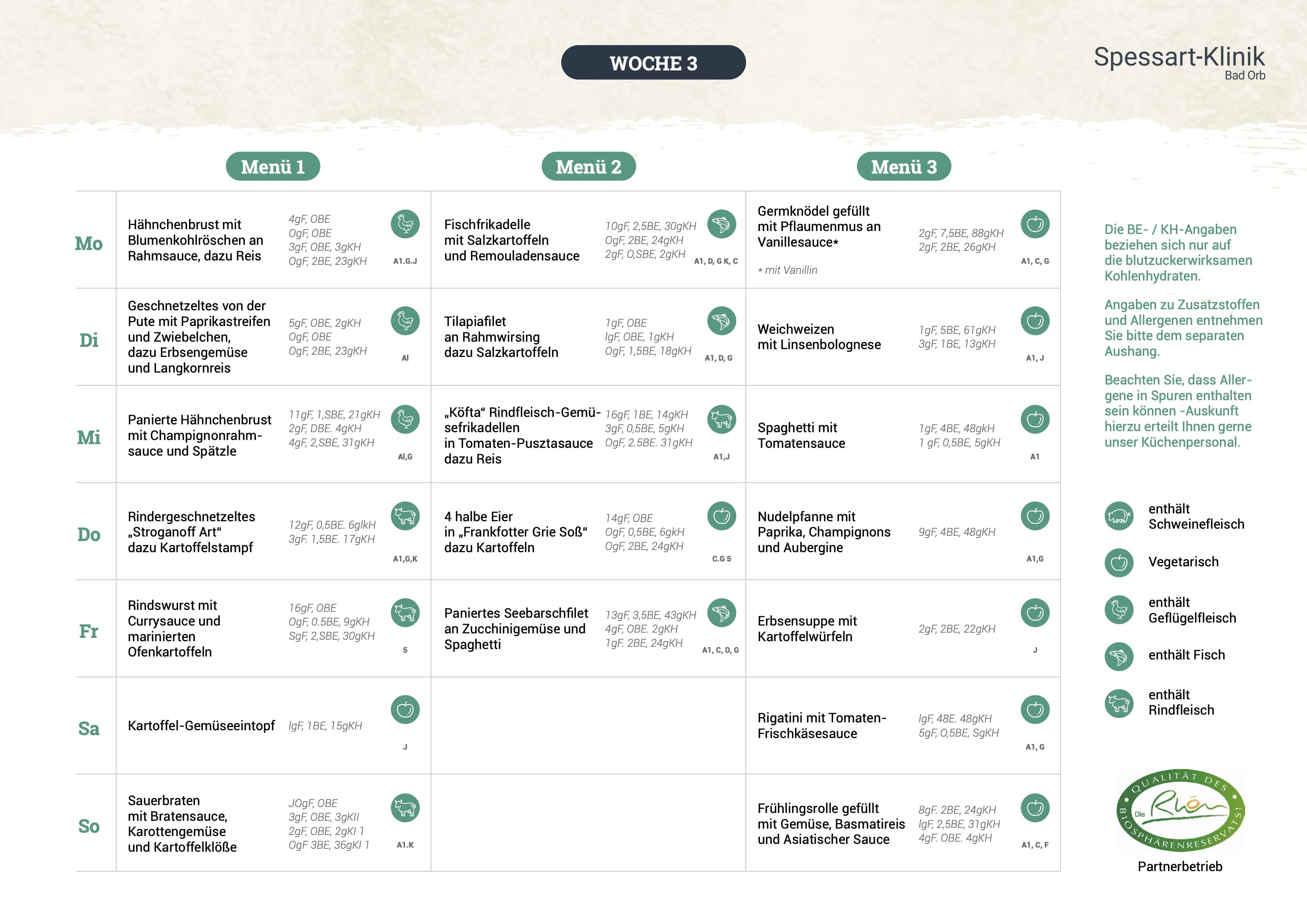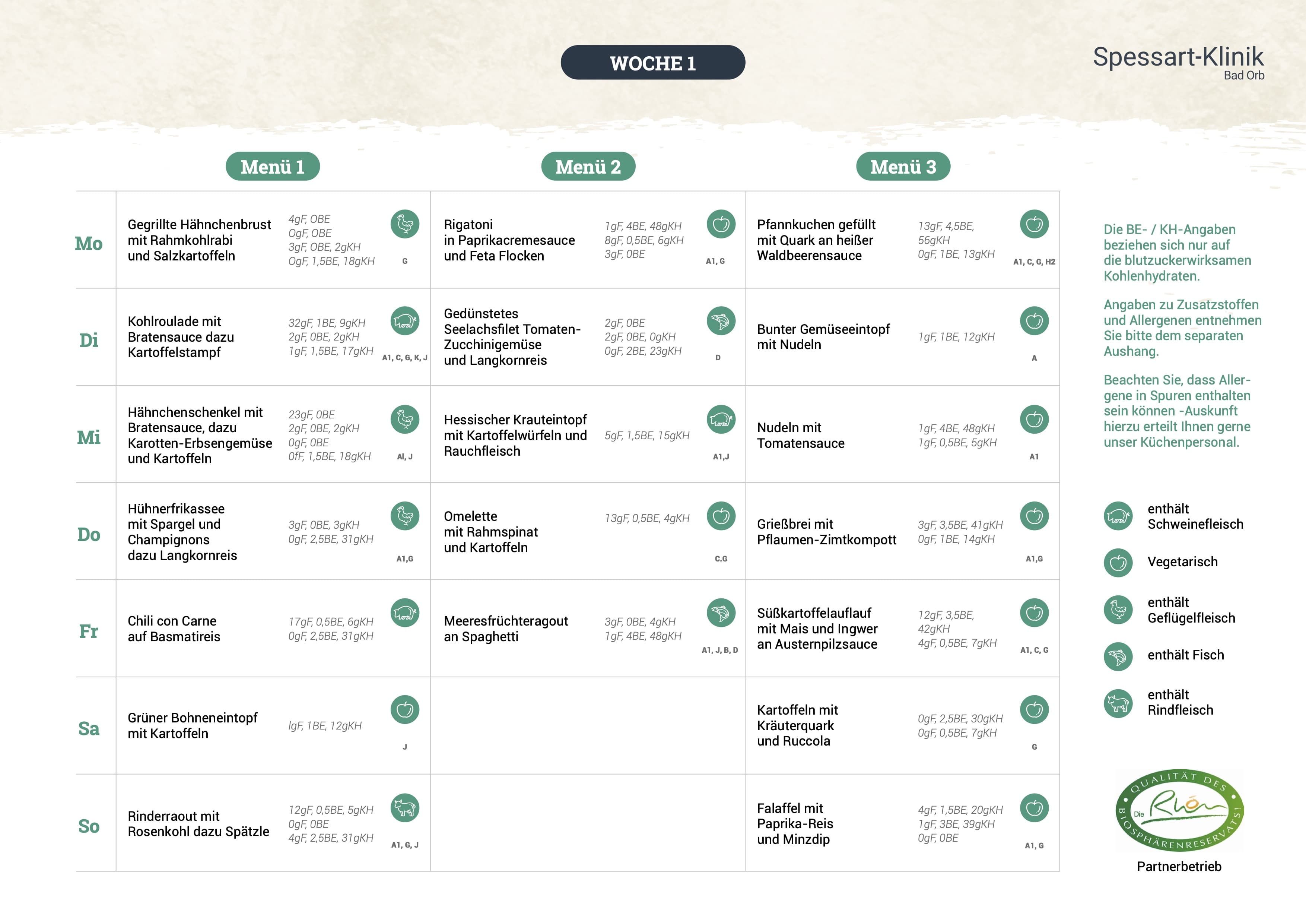 Unser Speiseplan bietet täglich frische Gerichte, ausgewogen zusammengestellt von unserem Küchenteam in Zusammenarbeit mit der Ernährungsberatung. Hier finden Sie eine Übersicht der aktuellen Mahlzeiten: