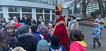 Die Kinder, Jugendlichen und Begleitpersonen, die sich zahlreich voller Aufregung versammelt hatten, waren sofort begeistert, als sie den ungewöhnlichen Nikolaus-Besuch erblickten. Es war ein unvergesslicher Moment: Die strahlenden Augen unserer Gäste, das Kichern und Staunen, als der Nikolaus alle mit Süßigkeiten und Geschenken überraschte.