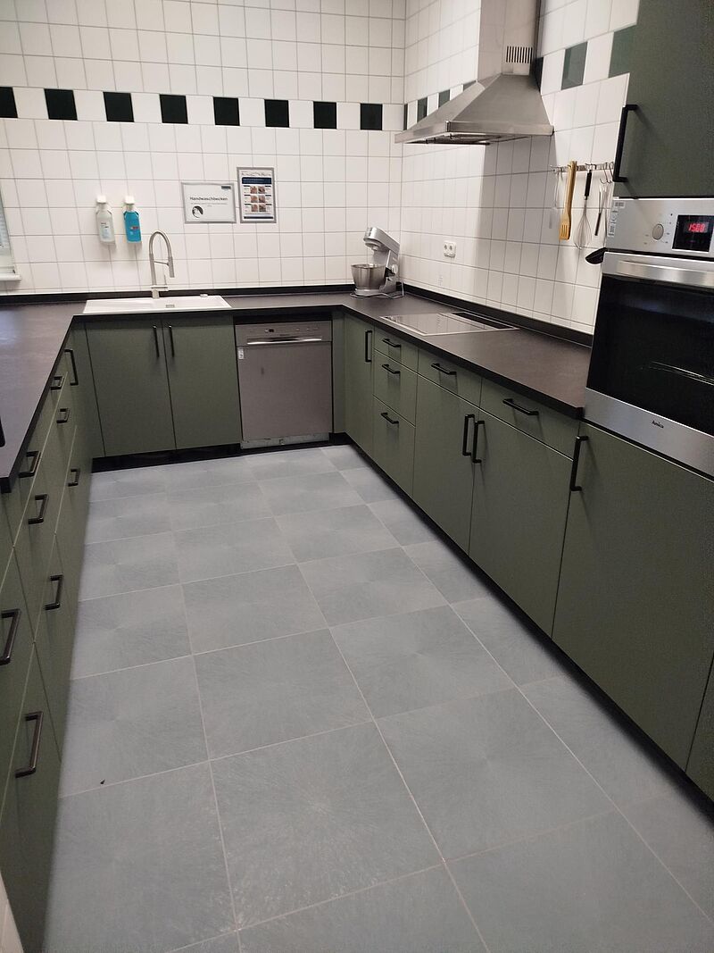 Unsere Lehrküche hat einen neuen Bodenbelag bekommen und zeigt sich nun in einem vollkommen frischen Erscheinungsbild. Der moderne, pflegeleichte Belag sorgt nicht nur für ein ansprechendes Ambiente, sondern schafft auch optimale Voraussetzungen für den Betrieb unserer Lehrküche. Durch die angenehme Haptik und die hochwertige Verarbeitung wirkt der Raum nun noch einladender und bietet unseren Rehabilitanden wie auch unseren Ernährungsberaterinnen ein verbessertes Arbeitsumfeld.